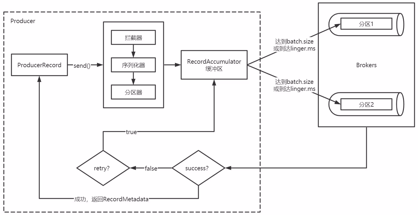 - 如果生产者配置了 retrires参数大于0并且未收到确认 ,那么客户端会对该消息进行重试。
