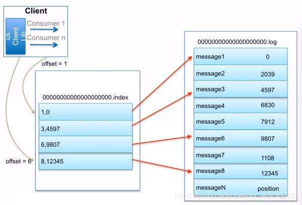 通过查询跳跃表ConcurrentSkipListMap,定位到在00000000000000000000.index,通过二分法在偏移量索引文件中找到不大于 23 的 最大索引项 ,即offset 20 那栏,然后从日志分段文件中的物理位置为320开始顺序查找偏移量为 23 的消息。
