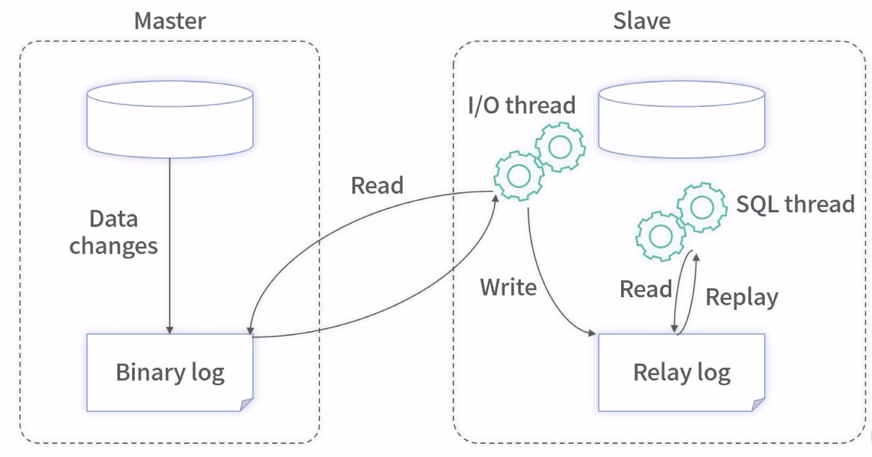 master的二进制日志文件的变化,如果发现master二进制日志文件 发生变化 ,则会把变化复制到自己的 中继日志