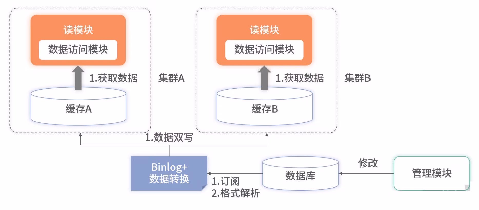 两套缓存集群可以分别部署到不同城市的机房。读服务也相应地部署到不同城市或不同分区。在承接请求时,不同机房或分区的读服务只依赖同样属性的缓存集群。此方案有两个好处。